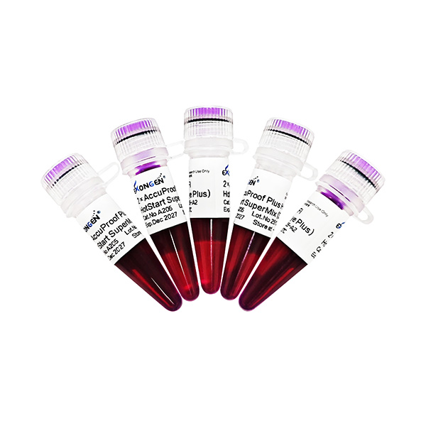 本产品包括通过基因改造技术实现快速扩增和超高保真的DNA聚合酶,具有高效持续合成能力,并对PCR抑制剂具有较强耐受性,在1-15 sec/kb的延伸速度下可实现超高的扩增效率和特异性,同时大幅度节省PCR反应时间。此外,超高保真DNA聚合酶结合高封闭率的抗体,可在PCR变性步骤之前抑制酶活性,防止非特异性扩增和引物降解,提高反应灵敏度和得率。由于使用的超高保真DNA聚合酶具有极强的3'→5'外切酶活性,与普通高保真酶相比,保真性更高,是普通Taq DNA Polymerase的160倍以上,为分子克隆、高通量测序和定点突变等需要高度扩增精确性的PCR实验提供了高效和便捷的解决方案。本产品含有dNTPs、Mg2+、优化的反应缓冲液、强效PCR增强剂、PCR反应的稳定剂等,浓度为2×,使用时只需加入模板、引物和水,使SuperMix溶液的浓度为1×即可进行反应。扩增产物为平端,可直接用于无缝克隆实验。本产品含有红色电泳指示剂,可在PCR反应完成后直接点样进行电泳,红色指示剂在1%琼脂糖凝胶中的迁移速率与1.5 kb双链线性DNA相当。